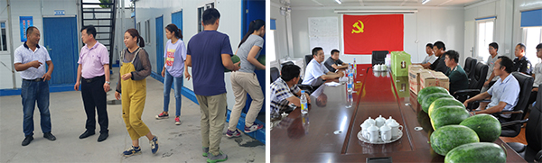 慰問組帶著對辛勤奮戰在一線職工的深切關心與愛護,每到一個工地,都會詳細察看、詢問工程建設情況,強調高溫天氣下的安全生產,叮囑有關負責人合理調整勞動作業時間,做好后勤保障工作,加強對飲用水、食品和工地食堂的衛生管理,確保一線人員身體健康。同時,慰問組為各項目部送去了茶葉、綠豆、白糖、西瓜、毛巾、香皂等防暑降溫品,把清涼送到了一線人員的心坎上。各項目部一致表示,將按照公司領導的要求,認真做好安全生產工作和施工現場防暑降溫工作,確保工程建設順利開展。